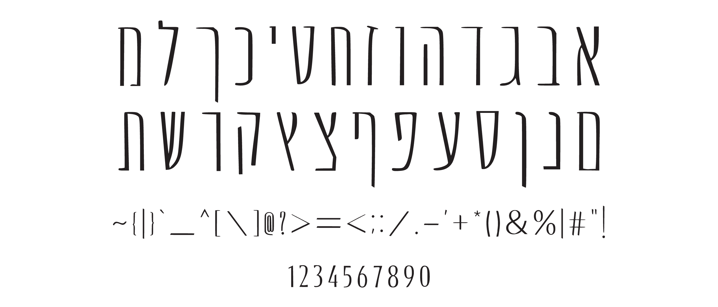 Minimalistic and tall Hebrew font, for a particularly elegant and clean appearance.