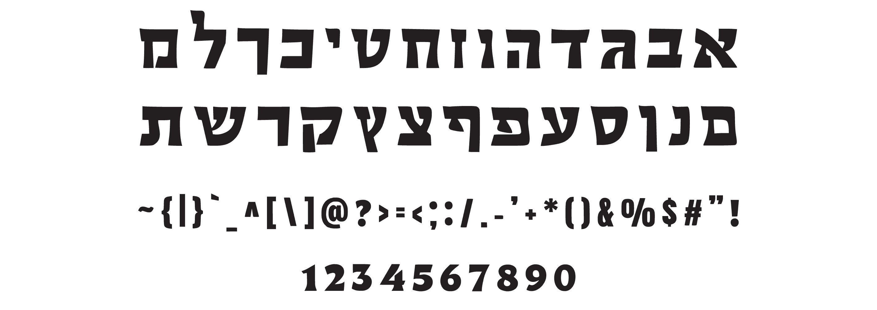 פונט עברי עבה וטבעי, עם מראה מחוספס ואותנטי, מושלם למותגי טבע ובוטיק.