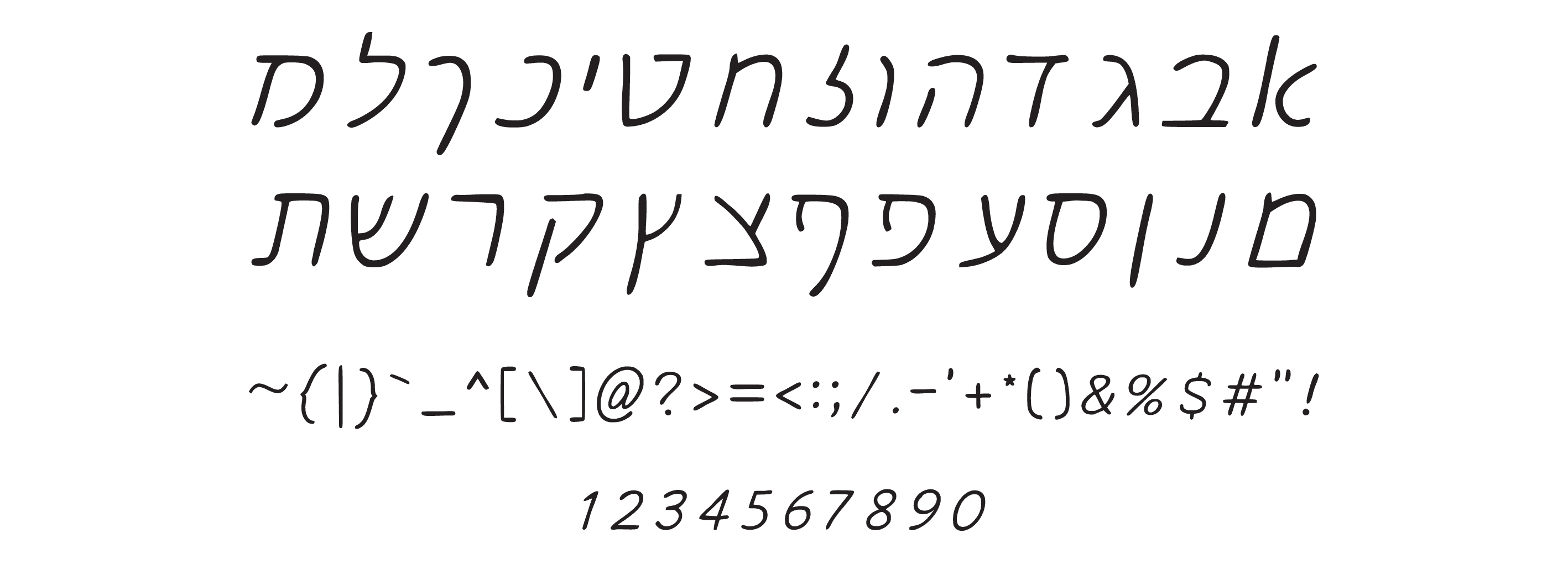 פונט עברי קליל, אישי ונעים, בסגנון כתב יד רך ומזמין.