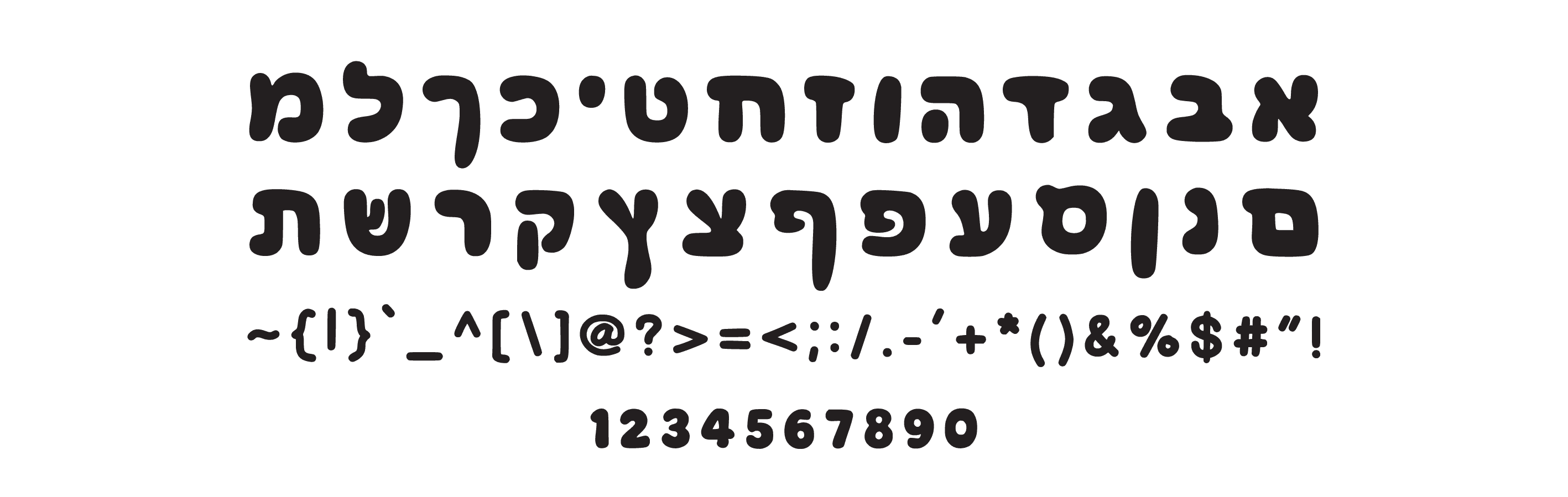 פונט עברי עגול, נפוח וכיפי, מושלם ללוגואים, פוסטרים ומיתוג צבעוני ושמח.